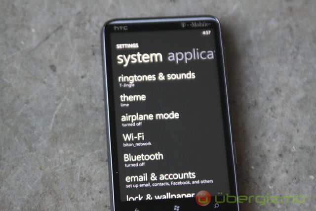 In this paragraph, I am going to summarize my opinion and observations about WP7 user interface, if you would like to see more pictures, go to the Samsung Focus review, in the WP7 UI paragraph. My background in design is probably the reason why I love the Windows Phone 7 user interface so much, the Microsoft Mobile team did a brilliant job on the OS’ aesthetics across all its different applications, leveraging the great work that was done on the Zune interface a few years ago, they maintained the design consistency with a beautiful usage of the typography.