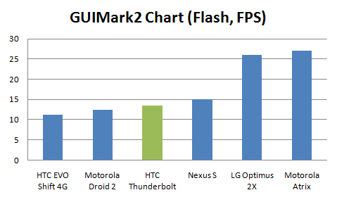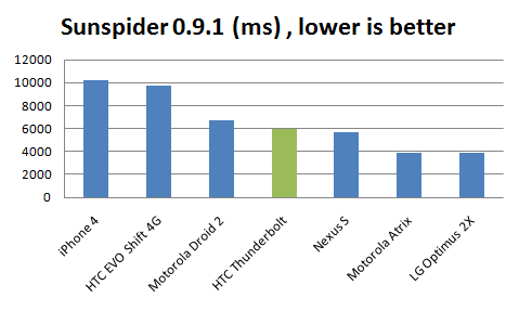 Measured: After measuring the performance, it is clear that the Thunderbolt is not a super fast computer. It means that most most activities involving heavy processing, like games, Javascript, video compression etc… will be faster on handsets with a modern chip. It’s up to you to decide if network performance or local computing performance is more important.