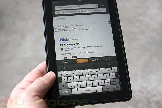 I would suggest Amazon to put the email commands and the special characters at the bottom of the screen so that the keyboard can be raised up closer to the center. That way I could hold it close to its center of gravity. It’s an easy fix and would go a long way to help.