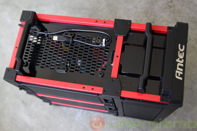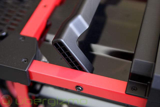 At the top, there are two plastic handles that let you lift the computer if you want to move it around (hence the “Lanboy” name). I used them to move this 7500g (or 16.5lbs) computer around. The 4 connecting points should be able to endure that weight without much trouble. But still, I felt a bit queasy when I was walking up and down stairs wearing flip-flops with 17lbs of metal not far from my toes. I would have preferred metal – it may not be “necessary”, but I would feel better about the handles.