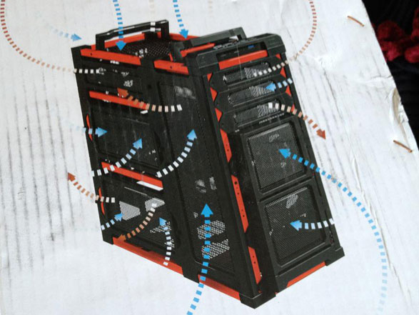 If you have a much “hotter” system, you may require more fans, and If that’s the case, I’m not sure that an open-air design actually helps because it is very hard to direct and control the airflow in this system, and this photo of the cardboard box (above) ironically conveys the idea… it’s a mess.