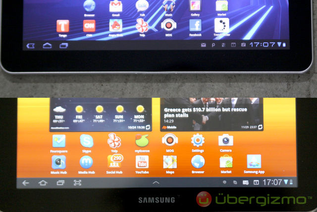 Comparing the icons in the Galaxy Tab 10.1 without the TouchWiz update (tpp) and the Galaxy tab 8.9 with TouchWiz icons (bottom)