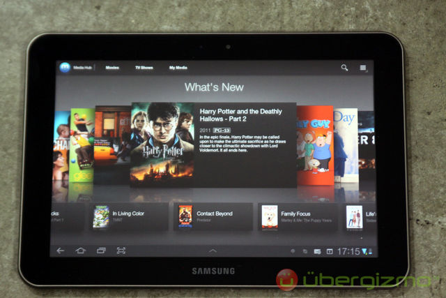 Media Hub is Samsung’s movie and TV Show store featuring a visual carousel on the home screen from which you can easily select the movie you would like to view. Movies can also be purchased on the Android market.
