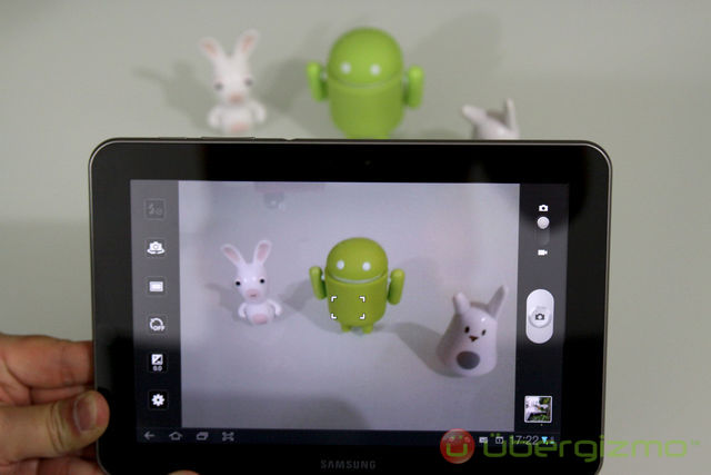 The Galaxy Tab 8.9 delivers good quality photo with great contrasts (see picture) compared to other tablets, including the iPad 2 (not good, fuzzy, too dark with lower resolution – see picture) and the Asus Transformer Prime (colors are off, the contrast is not as good- see picture). The camera application user interface is well designed with access to advanced options.