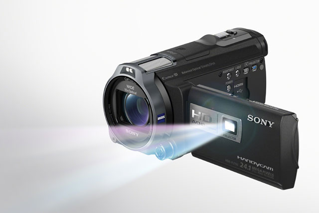 [CES 2012] Sony introduced its first Handycam camcorder with a built-in projector last year at CES. The projector attached to the swing out LCD allows projection on flat surfaces without the need to transfer the movie to a computer or watch it on the tiny LCD screen, that’s great when you want to travel light and have fun with your friends and family while on vacation.