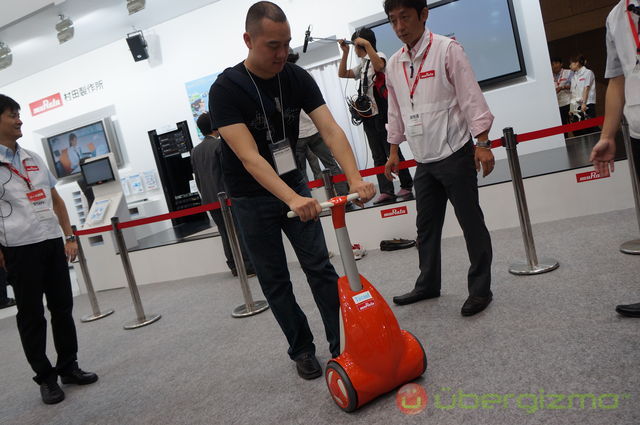 [CEATEC 2012] We’re still a long way off from having self-replaceable, robotic legs but that isn’t stopping companies from trying to pave the way for such technology. Murata is one such company. Back in 2011, the company exhibited a concept model of an Electric Walking Assist Car, and this year they’ve managed to create a fully-working prototype. Looking like a smaller version of a Segway, users don’t stand on the “Car”. Instead, they lean on it, putting their weight on its handlebars, pushing forward, pulling backwards or turning into the direction they wish to go. From what we can see, it works like a regular walking aid – except that it looks a lot fancier and has some additional features over its normal counterpart.