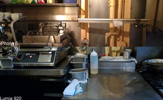 For instance, the iPhone (4/4S/5) would tend to compensate by using “gain”, which is basically amplifying the little light that the sensor gets. It makes the image look brighter, but it also adds a LOT of noise (see photo above). In any case, “gain” is not a substitute for having more light. Because the Lumia 920 gets more light, it can create a final image that is noticeably cleaner than the iPhone.