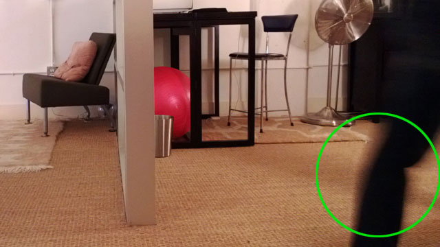 Slow shutter speed induces blurring. Someone’s leg has moved during this photo.