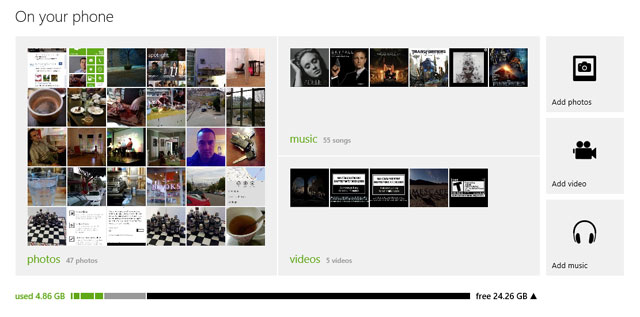 Smartphone management: if you are on Windows 8, Microsoft is not using the Zune software to manage Windows Phones anymore. Instead there is a full-screen dedicated app that is much more intuitive in our opinion. Basic tasks like copying files to/from the phone are clearly visible, and the store takes a background role, which is the way it should be.