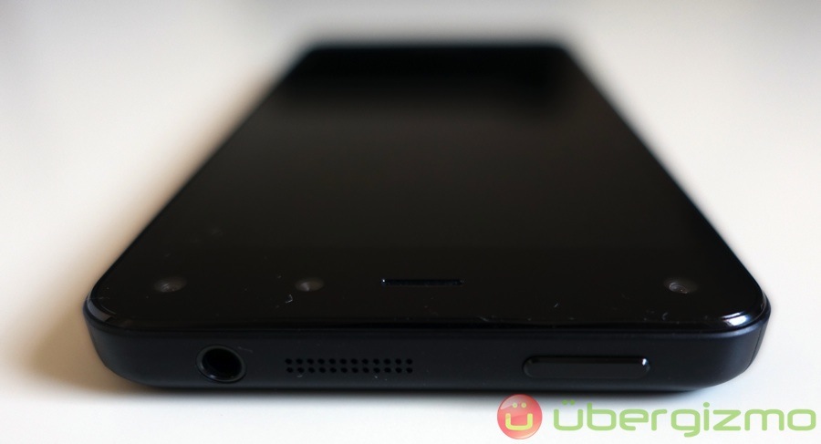 At the top of the Fire Phone is the power button, 3.5 headphone jack, and one of two stereo speakers. The other speaker is located on the bottom of the device along with the Micro USB port. Together, the dual stereo speakers with Dolby Digital Plus audio processing produce equally balanced sound that is audible even in noisy places. The speakers are one of the better ones in a smartphone.