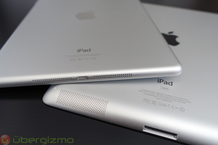 iPad Air (top) speakers are now on the bottom. iPad 3/4 (bottom) speaker were on the on back.