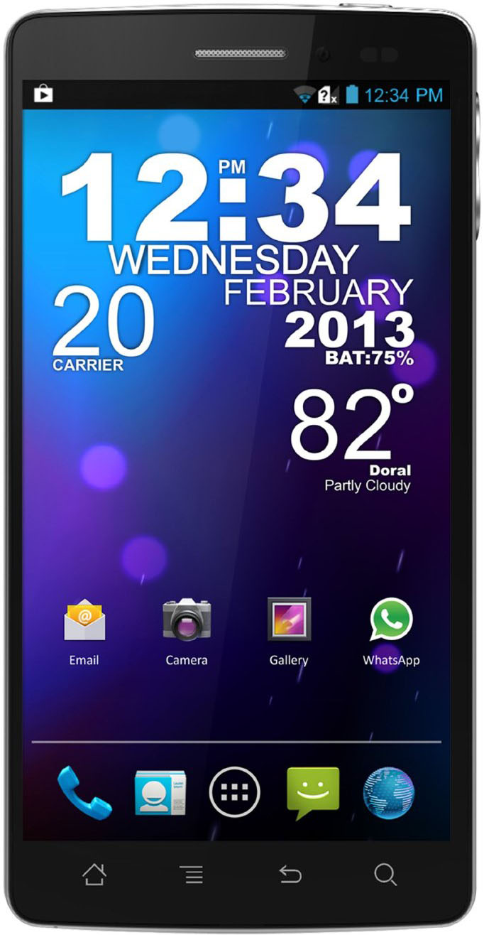 The BLU Quattro 5.7 HD phone has a 5.7-inch (1280x720) IPS LCD screen, a 8MP main camera and a 1.3MP selfie camera. The battery capacity is 2800 mAh and the main processor is a Nvidia Tegra 3 with 1 GB of RAM.