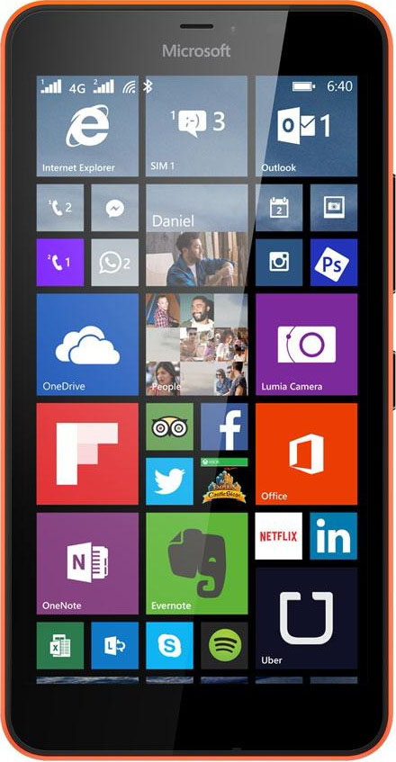 The Microsoft Lumia 640 phone has a 5-inch (1280x720) IPS LCD screen, a 8MP main camera and a 1MP selfie camera. The battery capacity is 2500 mAh and the main processor is a Snapdragon 400 with 1 GB of RAM.